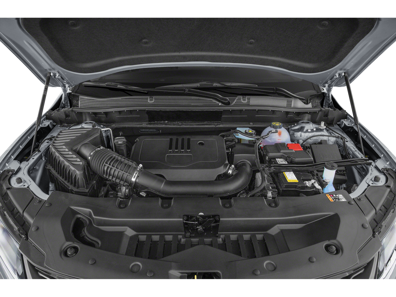 SUNROOF, POWER PANORAMIC, TILT-SLIDING WITH POWER SUNSHADE, DRIVER CONFIDENCE II PACKAGE includes (UV2) HD Surround Vision, (DRZ) Rear Camera Mirror, (KSG) Adaptive Cruise Control, (UGN) Enhanced Automatic Emergency Braking and (HS1) Safety Alert Seat, ENHANCED CONVENIENCE PACKAGE includes (AAB) memory settings, (KA6) rear outboard heated seats, (KU9) driver and front passenger ventilated seats and (N38) power tilt and telescoping steering column, BLACK LUG NUT AND WHEEL LOCK KIT includes 20 lug nuts, 4 locks and 1 key, FLOOR LINER PACKAGE includes (RIA) front and second row all-weather floor liners, LPO and (CAV) integrated cargo liner, CHEVROLET INFOTAINMENT 3 PREMIUM SYSTEM with connected Navigation, 10.2 diagonal HD color touchscreen, AM/FM stereo, Bluetooth® audio streaming for 2 active devices, Apple CarPlay and Android Auto capable, enhanced voice recognition, additional memory for in-vehicle apps, cloud connected personalization for select infotainment and vehicle settings. Subscription required for enhanced and connected services after trial period. (STD), ENGINE, 3.6L V6, SIDI, DOHC WITH VARIABLE VALVE TIMING (VVT) and Active Fuel Management with Stop/Start (308 hp [229 kW] @ 6700 rpm, 270 lb-ft of torque [366 N-m] @ 5000 rpm) (STD), TRANSMISSION, 9-SPEED AUTOMATIC, ELECTRONICALLY-CONTROLLED with overdrive, includes Driver Shift Control (STD). Chevrolet RS with Sterling Gray Metallic exterior and Jet Black with Red Accents interior features a V6 Cylinder Engine with 308 HP at 6700 RPM*.
