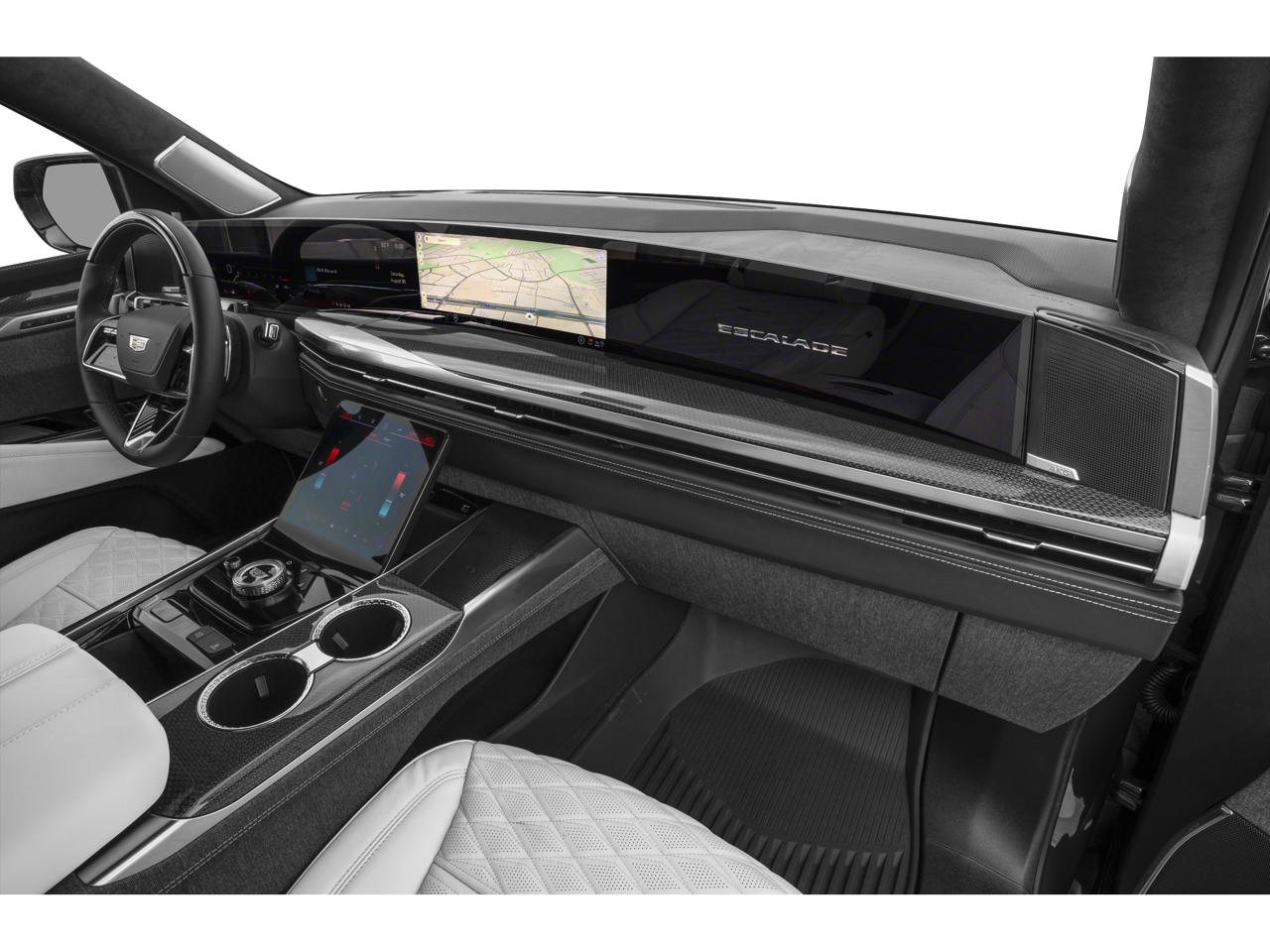 FLOOR LINER PACKAGE includes (CAV) Integrated cargo liner, (AAK) Premium all-weather floor liners, 1st and 2nd rows, LPO and (RIB) All-Weather Floor Liner Package, 3rd row, 10-SPEED AUTOMATIC electronically controlled with overdrive, tow/haul mode and tap up/tap down shifting (STD), VVT (682 hp [509 kW] @ 6000 rpm, 653 lb-ft torque [885 N-m] @ 4400 rpm) (STD). Cadillac AWD V-Series with Aegean Stone exterior and Jet Black interior features a 8 Cylinder Engine with 682 HP at 6000 RPM*.